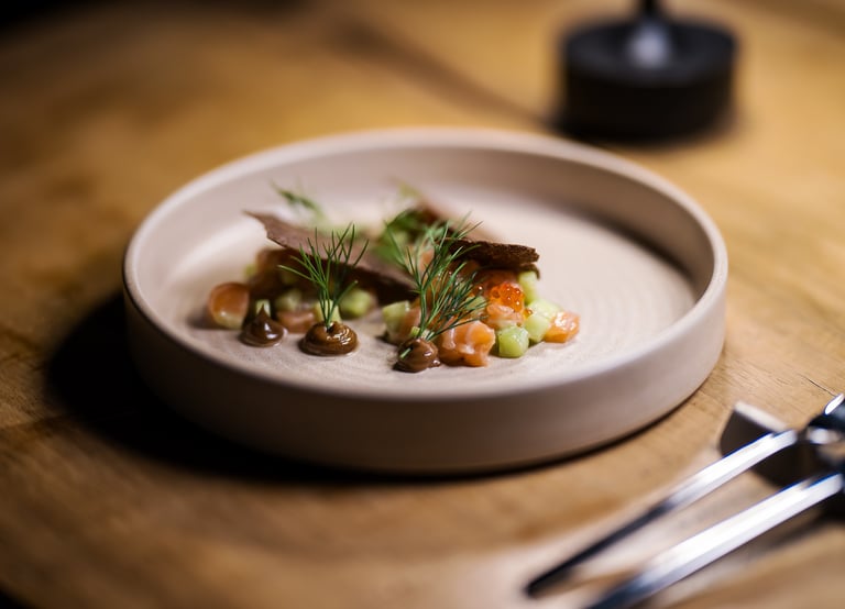 Trijų patiekalų degustacinė vakarienė, įkvėpta Prancūzijos Beaujolais regiono. Skoniai, kurie pasakoja apie sezoną, vietą ir lėtą buvimą prie stalo.